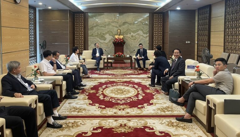 株式会社日本TOYO 代表取締役 古塩勝彦(以下、「TOYOグループ」)は、ベトナム国営電力グループ 代表取締役 チャン・ディン・ニャン(Vietnam Electricity Group、以下、「EVN」)と、ベトナム社会主義共和国(以下、「ベトナム」)における脱炭素化社会の実現に向け、共同調査に関する双方の協力可能性について2023年7月20日に話し合いました。